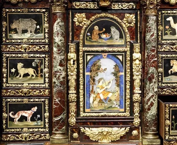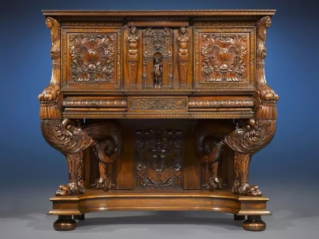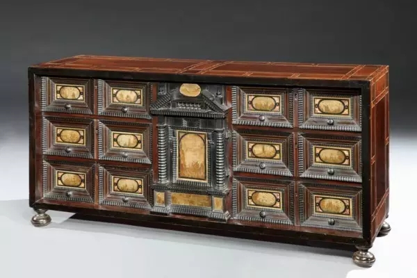 到16世紀(jì)的文藝復(fù)興時(shí)期,設(shè)計(jì)師們對(duì)精致的雕刻有著極大的追求,所以在材料上部分的放棄了粗粒度的橡木,并開(kāi)始使用核桃木等低密度的材料,使得雕飾更加精細(xì)。這時(shí)候的雕刻更多的是關(guān)于神話、寓言和歷史題材,同時(shí)對(duì)稱(chēng)和均衡是當(dāng)時(shí)的指導(dǎo)原則。家具的細(xì)節(jié)包括有藤蔓、花紋、渦卷、鮮花等,變得越來(lái)越復(fù)雜。同時(shí)那一時(shí)期還流行鑲嵌,材料多為象牙和骨頭,有時(shí)還用黃銅、鍍金等。