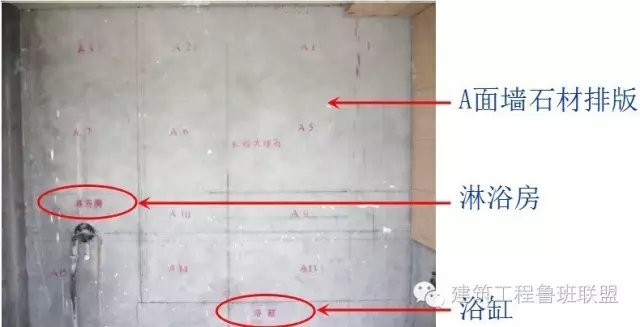 1、根據(jù)圖紙,以軸向控制線為基準(zhǔn),放制各區(qū)域廚、衛(wèi)墻面四周瓦工粉刷完成面線;