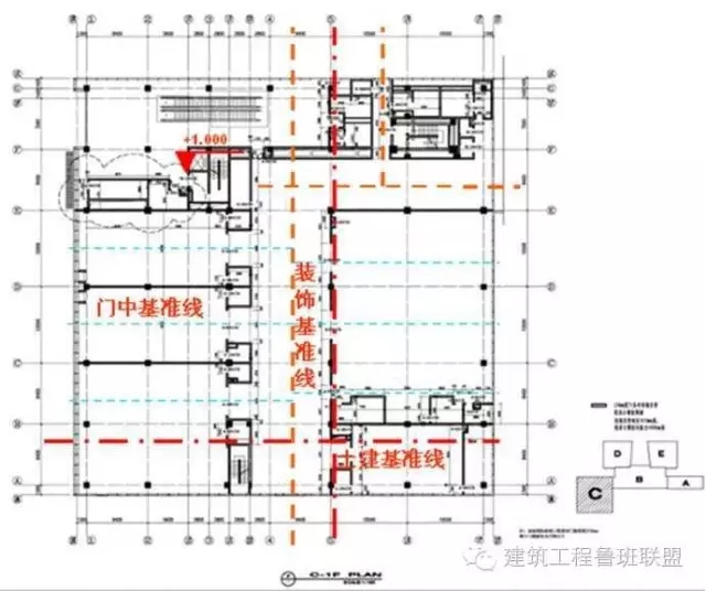 此種放線方法稱為平行放線法,也稱為走道施工法或門套成品化放線施工法。