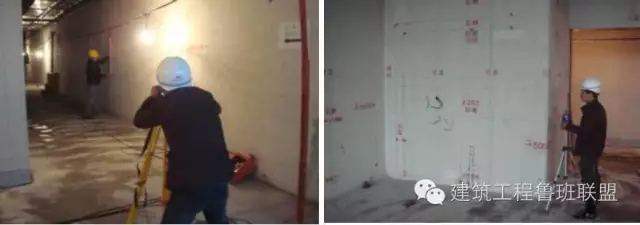 根據(jù)軸向控制線,測量土建墻面粉刷完成面平整度、方正度是否滿足施工要求。