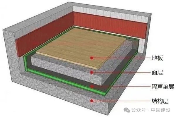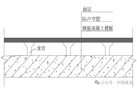 具體而言,浮筑樓板涵蓋了兩種主要的構(gòu)造做法:一種是隔聲空腔浮筑樓板,另一種則是隔聲墊層浮筑樓板。對(duì)于隔聲空腔浮筑樓板,其構(gòu)造特點(diǎn)在于利用龍骨進(jìn)行支撐,從而在面層與基層之間形成一個(gè)隔聲空腔;而對(duì)于隔聲墊層浮筑樓板,則是通過(guò)鋪設(shè)具有彈性的隔音減震材料,來(lái)形成一層有效的隔聲墊層。